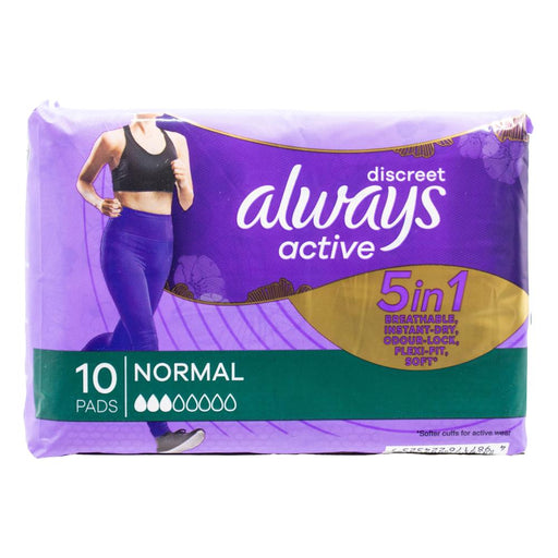 Always Discreetin stockAlways Discreet Pad Active Wear Normal 10 Pack 5 in 1